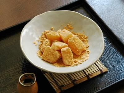 つるんとした柔らかい食感で、香ばしい黄名粉と黒蜜がよく合います。 お子様にも人気の商品です。